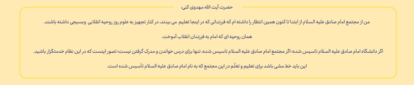 این مجتمع بهعنوان یکی از نهادهای فرهنگی اسلامی و برآمده از انقلاب اسلامی، در مجموعه آموزشوپرورش کشور در راستای اهداف و چشماندازهای دانشگاه امام صادق علیهالسلام و از سوی مؤسس فقید خود بهعنوان یکنهاد تمهیدی برای دانشگاه امام صادق علیهالسلام پایهگذاری شده است.